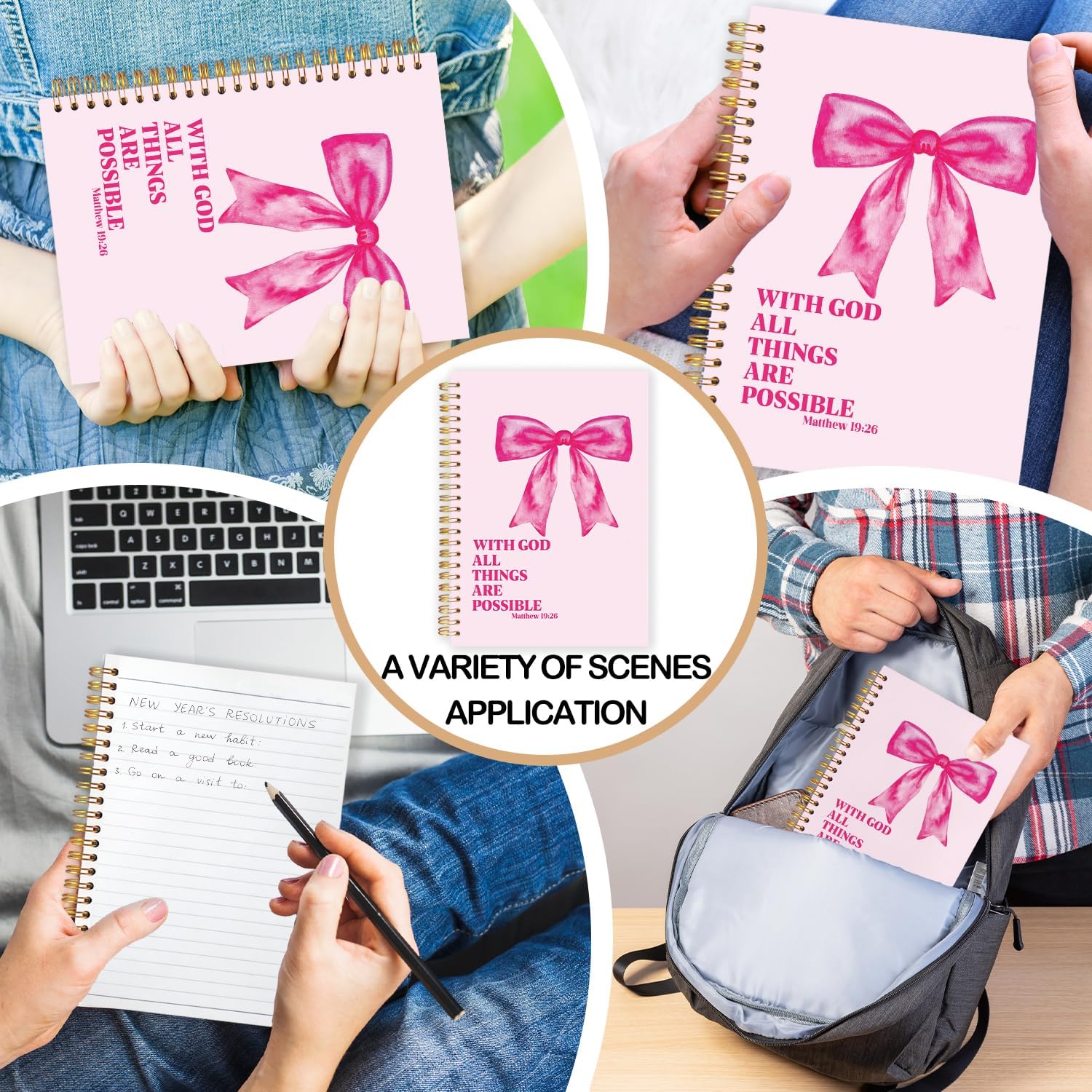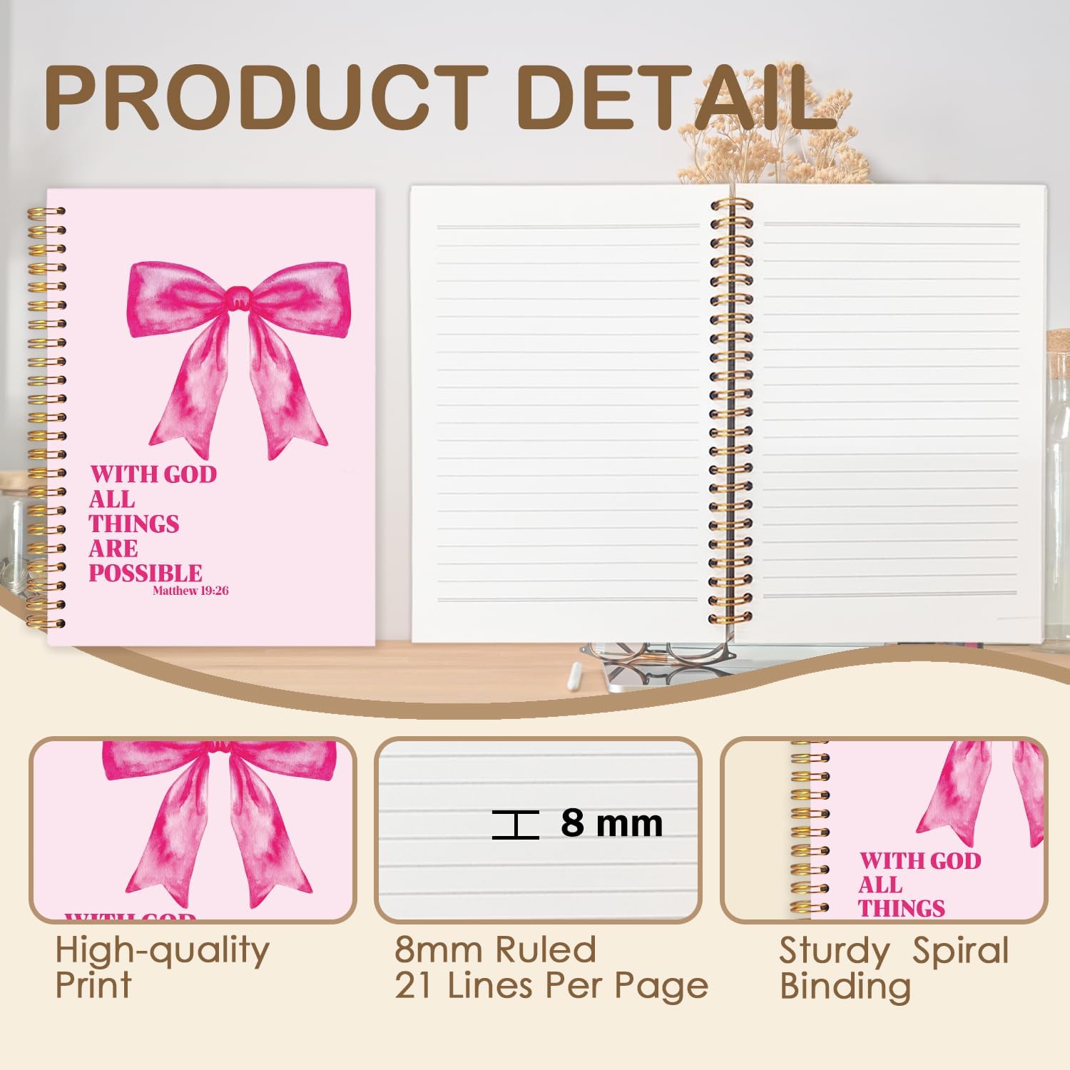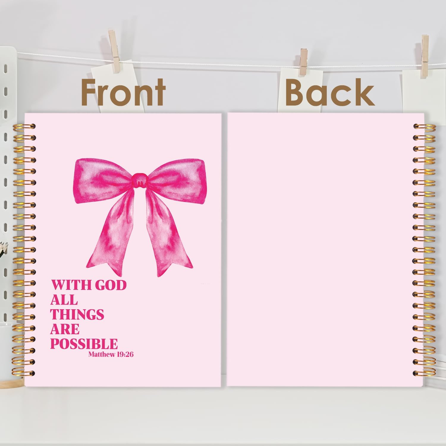 FDHSPAAM Coquette Pink Bow Christian Spiral Journal Notebook 5.5x8.3in, with God All Things Are Possible Inspirational Prayer Journal for Woman, Inspirational Bible Notebooks for Note Taking