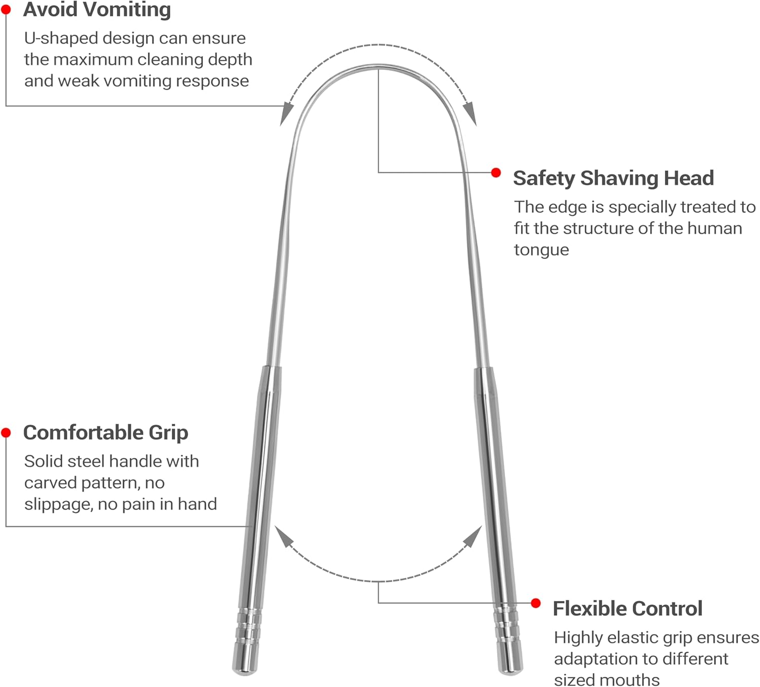 - RUST-PROOF, 100% STAINLESS STEEL: This tongue scraper is made with high-quality, 100% Stainless Steel to ensure durability and performance. This tongue scraper is specially designed to clean the hard to reach places in your tongue, keeping your mouth feeling fresh and clean. This tongue cleaner won't be beat!