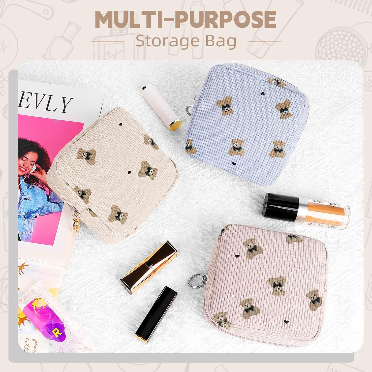 - 【Multi-style & Colorful Colors】The tampon organizer is available in your choice of color and multi-style. Cute bears tampon storage bag make of thickened corduroy fabric, soft, comfortable to touch, easy to clean, no fade