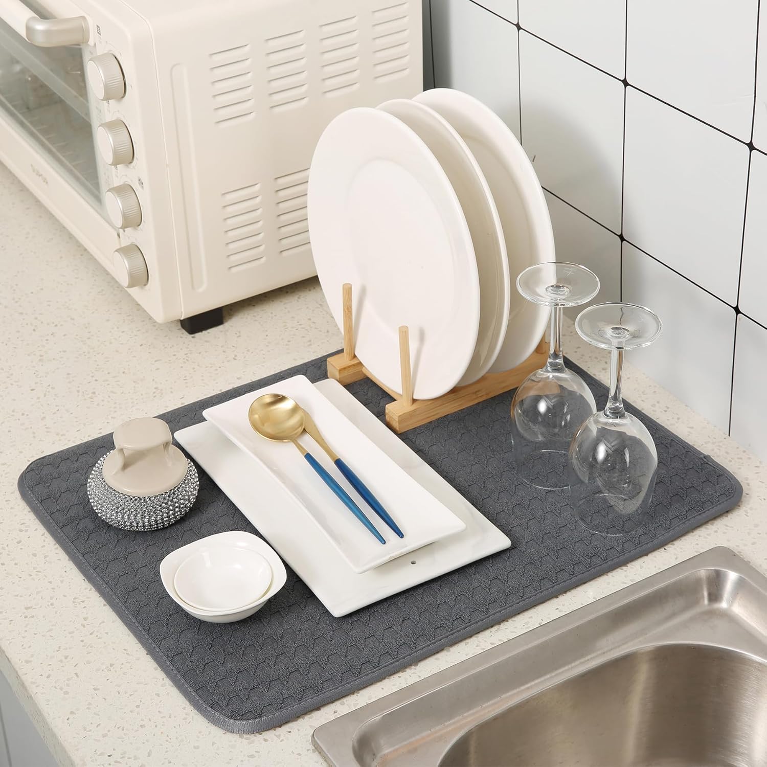 - LARGE SIZE DESIGN: Each kitchen drying mat measures 20 × 15 inches, spacious area allows you to dry multiple plates simultaneously, saving time and effort.