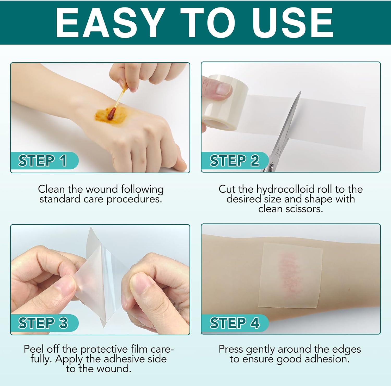 - Skin-Friendly: Hydrocolloid roll with hypoallergenic composition, free from latex and harsh irritants. (2in*11.8ft) extra Large size roll, economical option for daily use