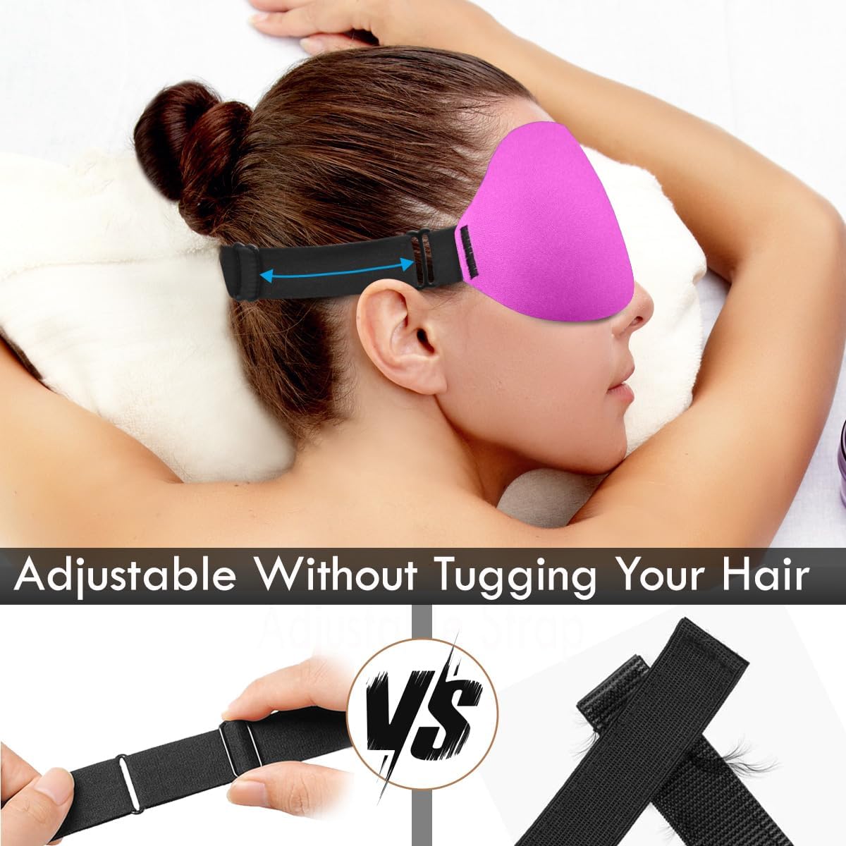 - 🎒【Fully Adjustable & Travel-Ready】 Elastic strap fits all head sizes without pulling hair or irritating ears. The symmetrical design stays in place all night. Great for naps, meditation, flights, yoga, or office breaks.