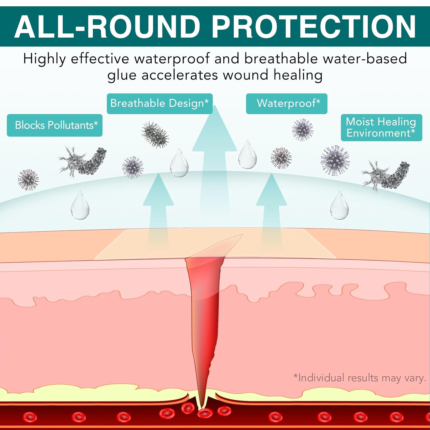 - Flexible & Waterproof: Its stretchable and waterproof design ensures a secure fit even over joints or curved areas, keeping wounds dry during showers or daily activities while blocking dirt.