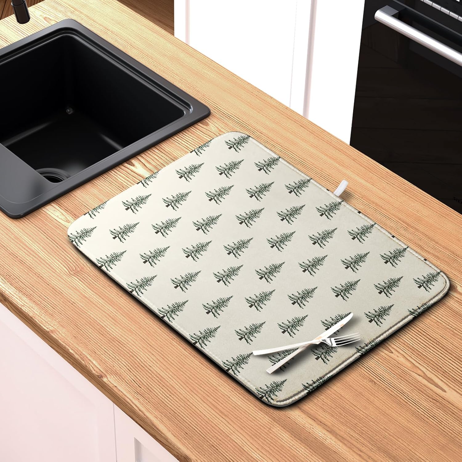 Christmas Tree Dish Drying Mat Winter Xmas Holiday Drying Mats Microfiber Absorbent Dishes Drying Pad Reusable Washable Kitchen Countertop Protector Dish Drainer Rack Mat 16x18 Inch