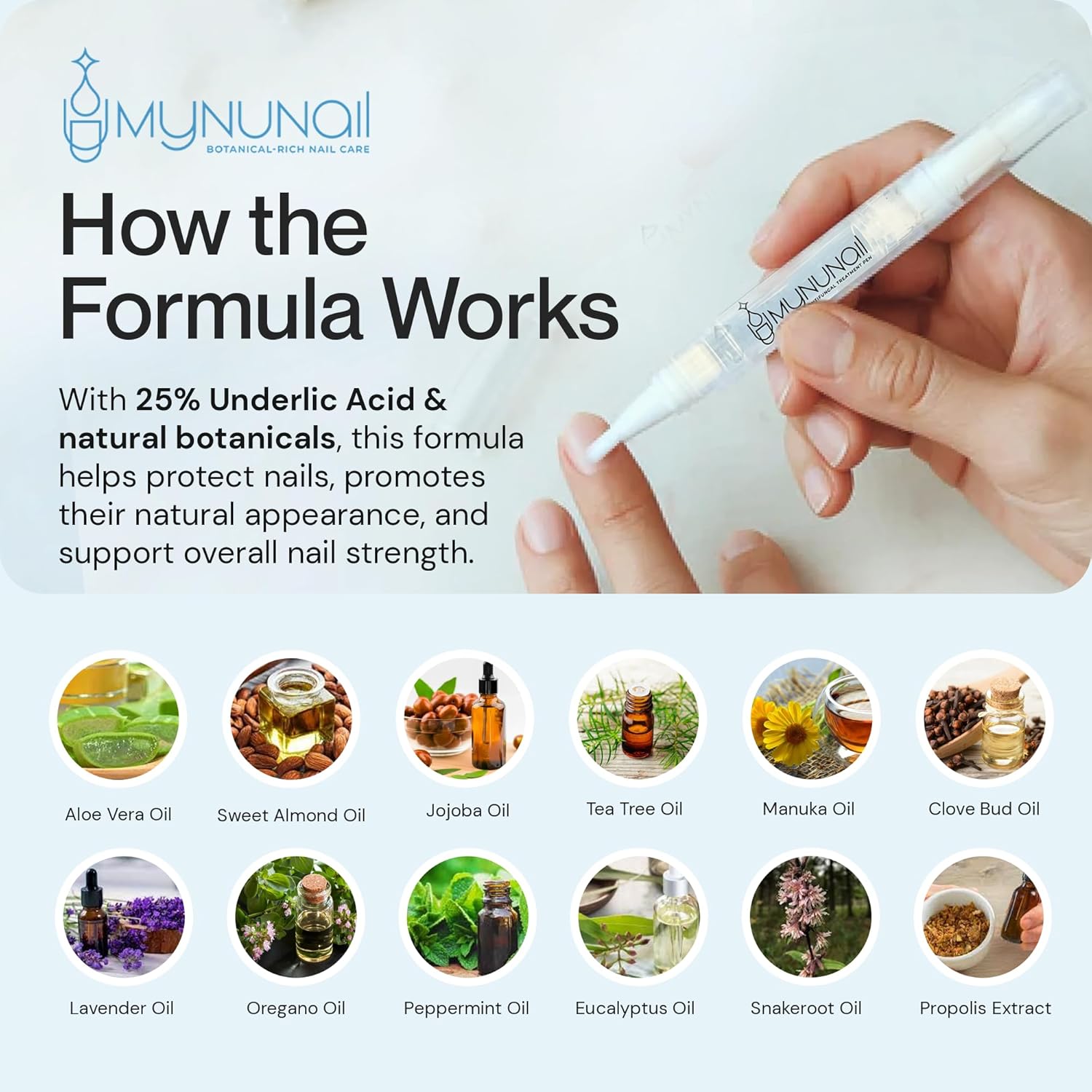 - πΏ BOTANICAL-RICH FORMULA: Our advanced blend combines tea tree, manuka, oregano, clove, snakeroot, and lavender oils with nourishing botanicals like aloe vera, sweet almond, and jojoba oil. This plant-powered combination helps moisturize and protect nails while supporting their natural strength, making it a great choice for ongoing nail care and appearance improvement.