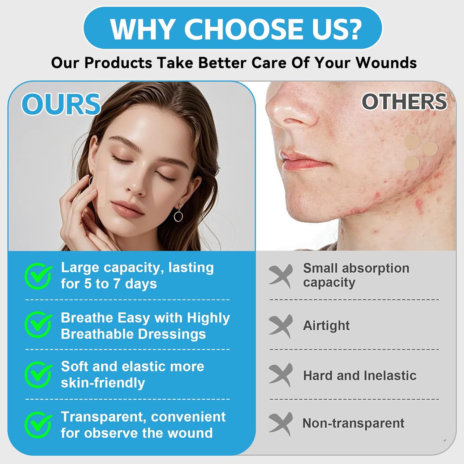 - Waterproof - Hydrocolloid bandages effectively shields wounds from external contaminants, allowing worry-free showering, swimming or physical activities