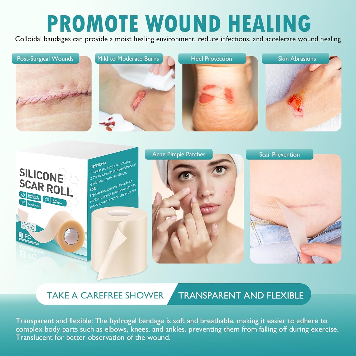 - Waterproof - Hydrocolloid bandages effectively shields wounds from external contaminants, allowing worry-free showering, swimming or physical activities