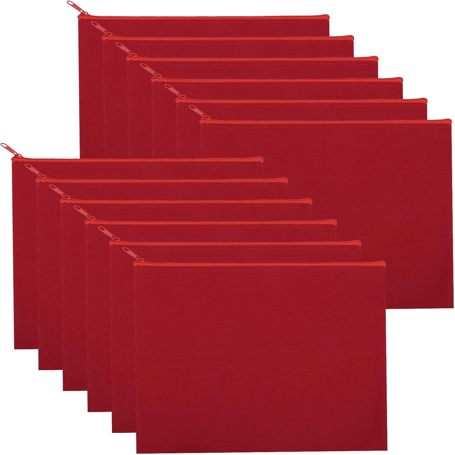 12 Pieces Cotton Canvas Makeup Bag, Multipurpose Cosmetic Bag with Zipper Travel Toiletry Pouch, Blank DIY Craft Bag (Red, L)