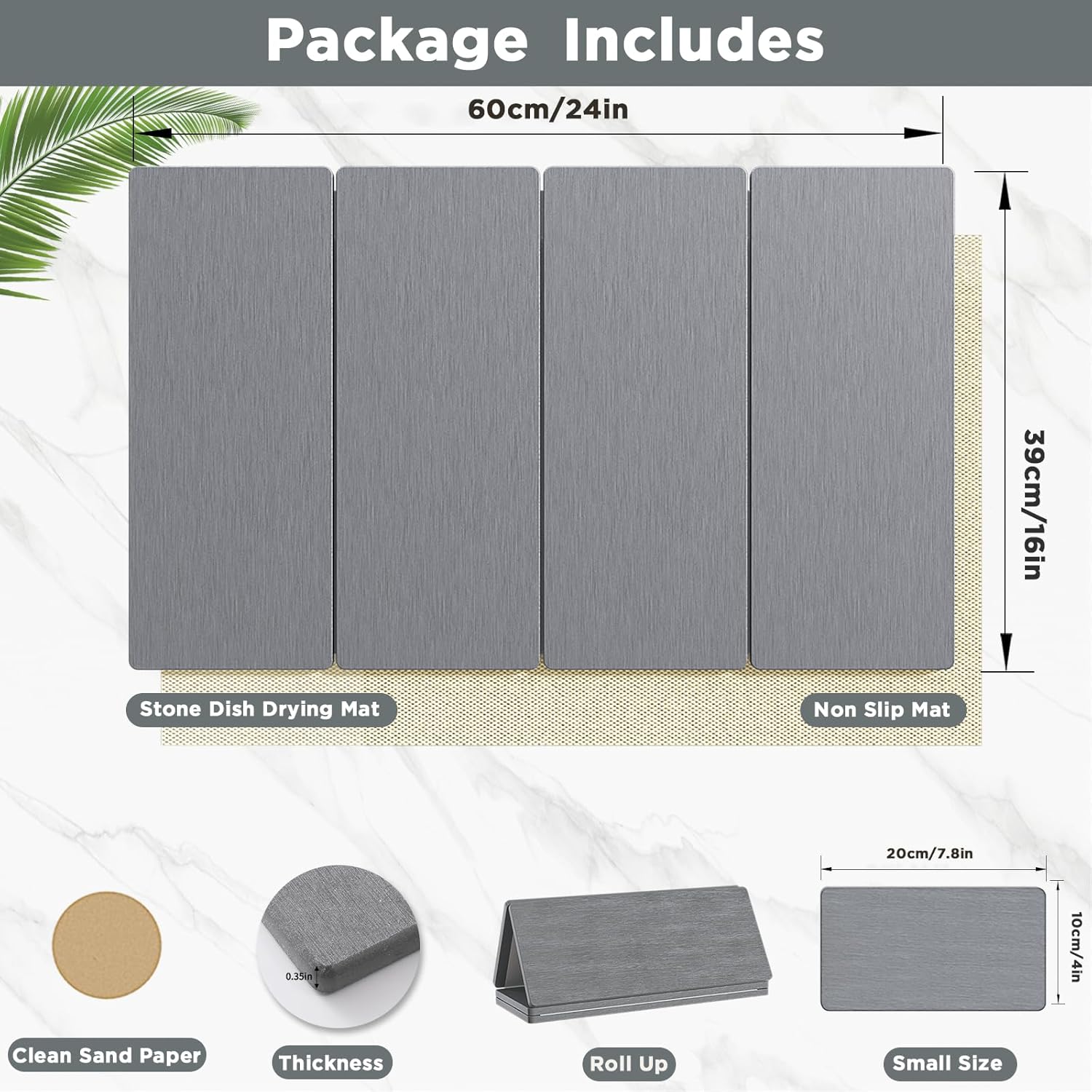 - 【The Ultimate Duo : Large & Small Mat Set】Maximize your kitchen convenience with this complete set. You'll receive one large stone drying mat for all your dishwashing needs, one small stone mat for clever secondary uses, plus a sanding tool and a non-slip pad. The large stone drying mat handles everything from plates to pots with ease, while the small drying mat is brilliantly versatile—perfect as a dedicated soap mat or an elegant coaster. It's the perfect pairing for an organized, drip-free kitchen!