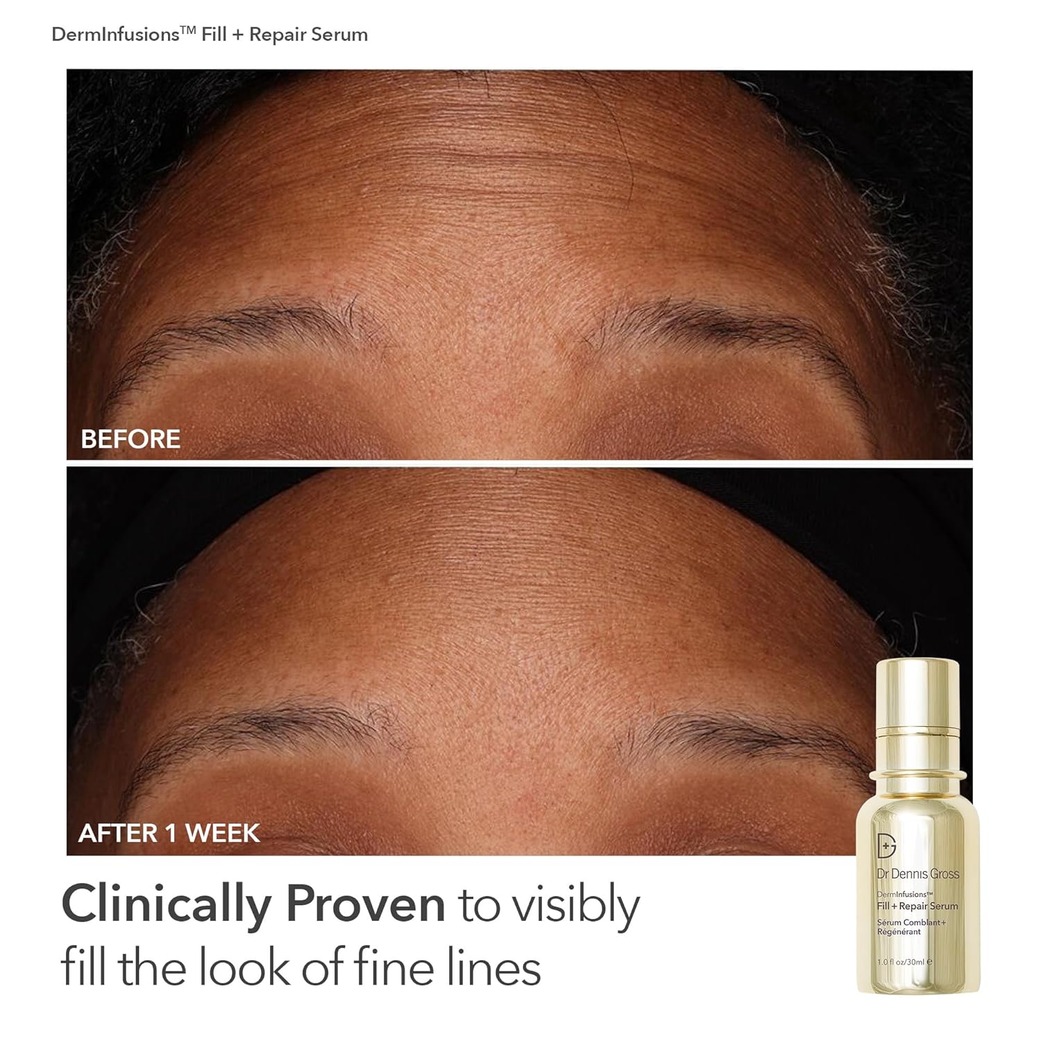 • This 3-piece DermInfusions collection features the Fill + Repair Serum (1 oz), Plump + Repair Lip Treatment (0.13 oz), and Fill + Repair Eye Cream (0.16 oz) — a targeted regimen for plumper, firmer, smoother skin.