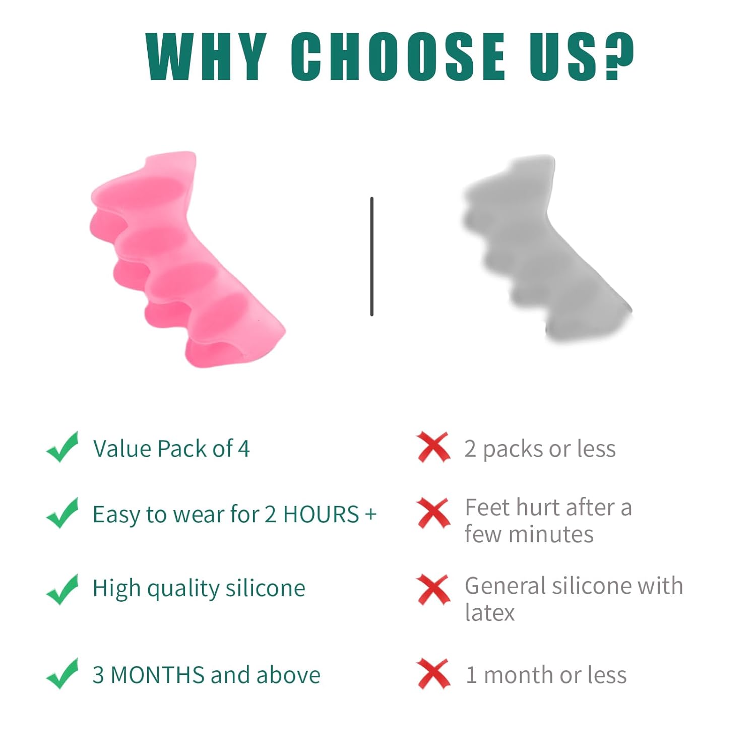 - 👣Effective Toe Separation: These toe correctors securely wrap around your toes, staying firmly in place. They provide optimal separation, prevent rubbing, relieve pressure, and help maintain proper toe alignment, promoting comfort and toe health.