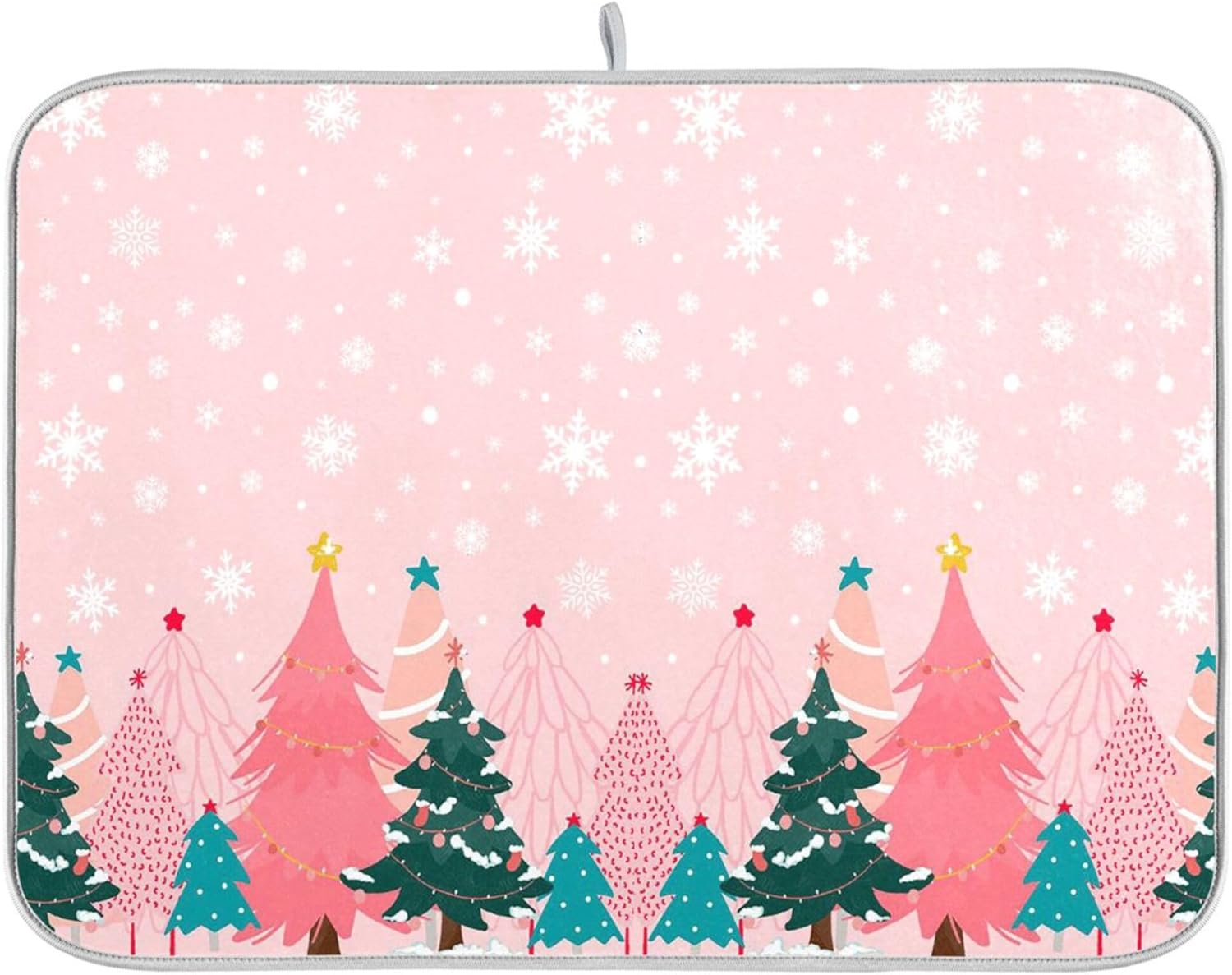 Christmas Tree Pink Dish Drying Mat for Kitchen Countertop 16x18 Winter Snowflake White Xmas Small Drying Mat Reusable Quick Dry Dish Sink Mats Easy Clean Decorative Essentials
