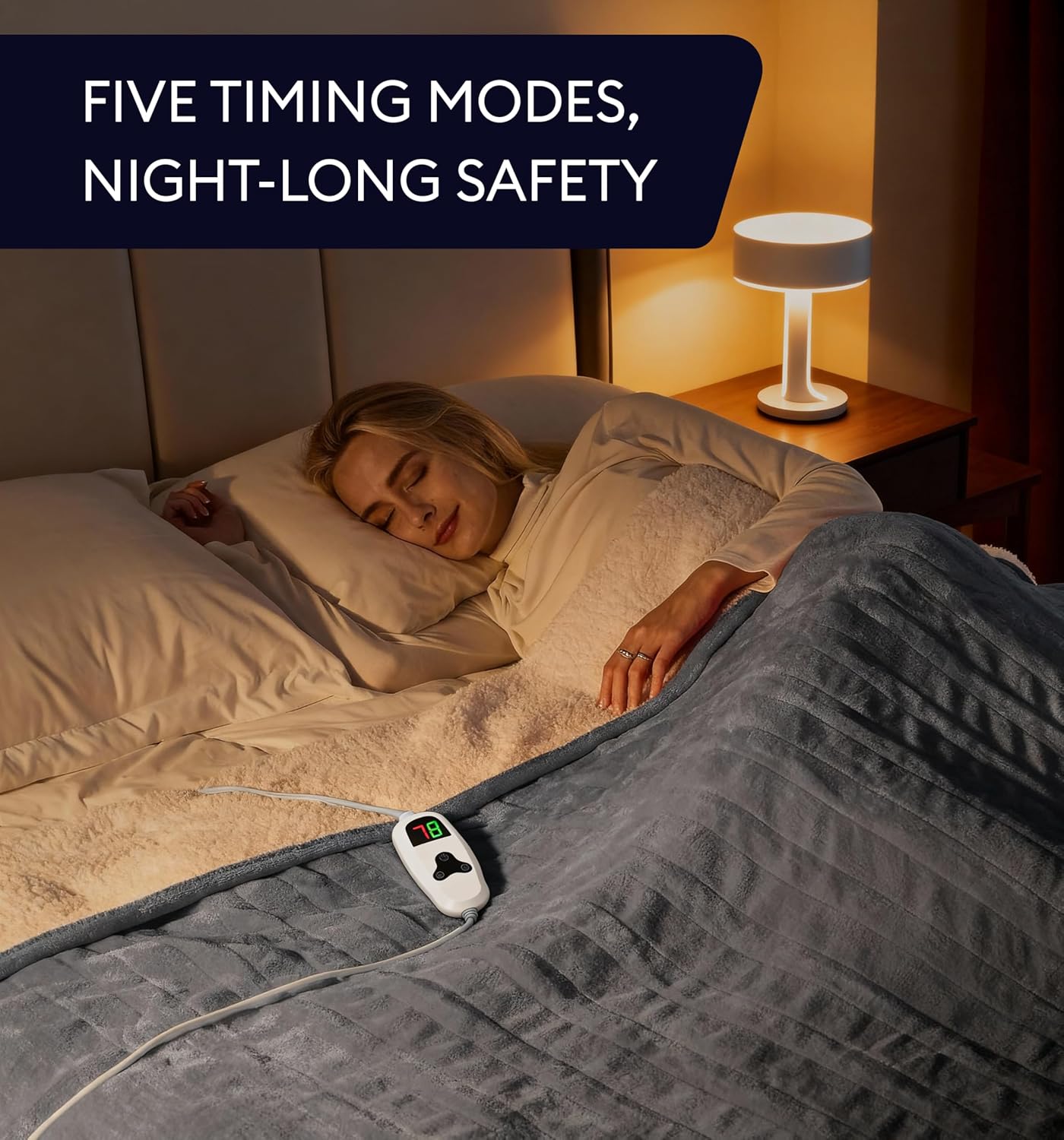 - Safe & Reliable – Built-in overheat protection and automatic shut-off ensure this electric heating blanket is both safe and worry-free.