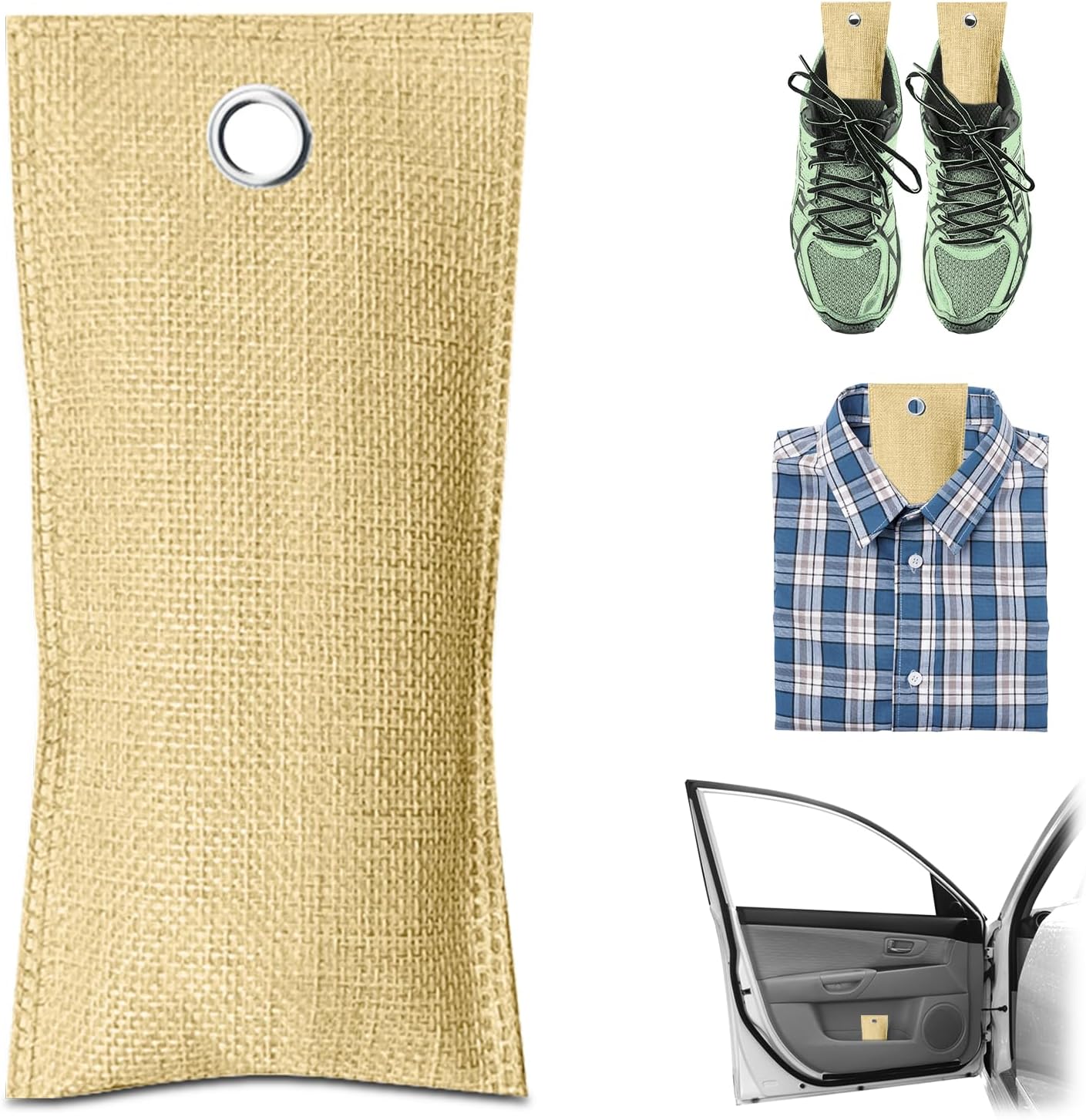 - 4 CHARCOAL DEODORIZER BAGS . Our bamboo charcoal bag musty smell eliminators are the perfect size to place wherever you have a bad smell: closet, car, shoes, gym bag, basement, pet areas.