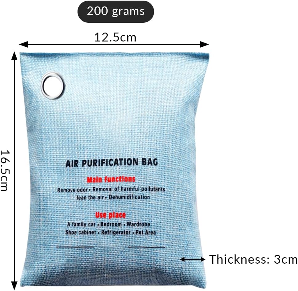 4 Pack charcoal odor absorber,Bamboo Charcoals Air Purifying Bag Charcoals Deodorizer Eliminator for Strong Odors in Car, Closet, Shoe, Basement (200G*4 Pack Blue, Unscented)