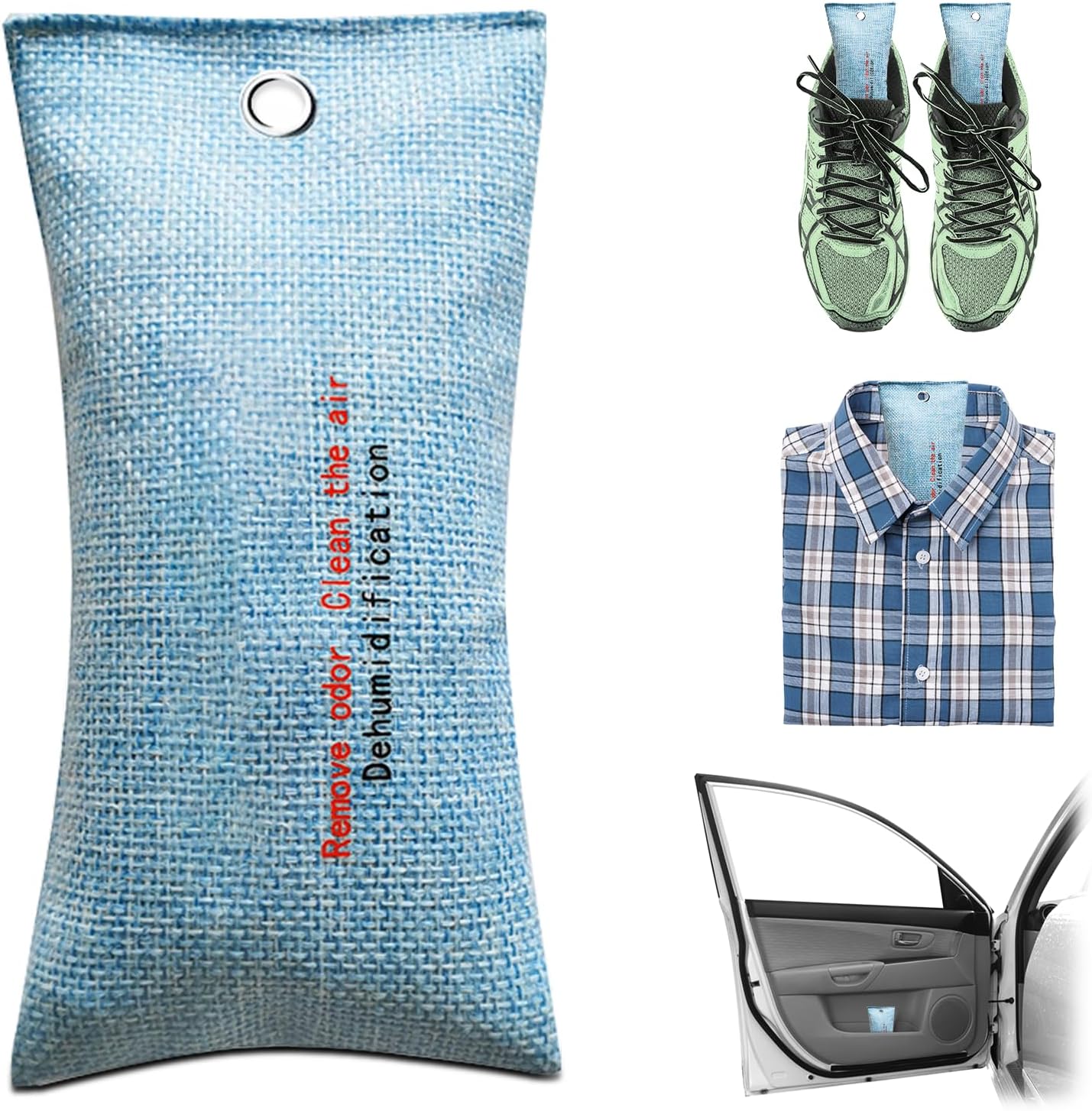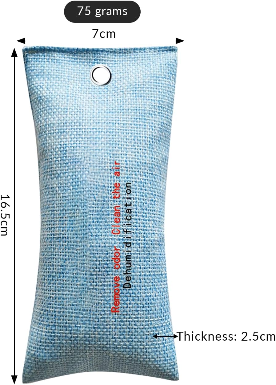 4 Pack charcoal odor absorber,Bamboo Charcoals Air Purifying Bag Charcoals Deodorizer Eliminator for Strong Odors in Car, Closet, Shoe, Basement (75G* 4 Pack Blue, Unscented)